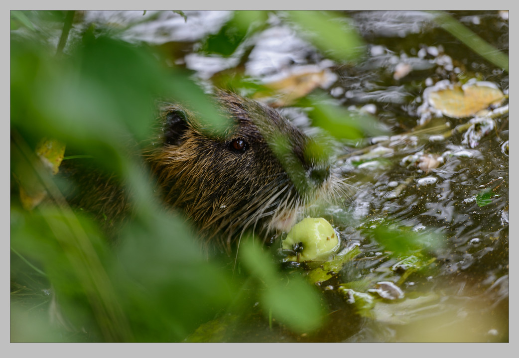 Die Nutrias sind zwar zahlreich, aber oft schwierig zu erkennen und zu fotografieren.